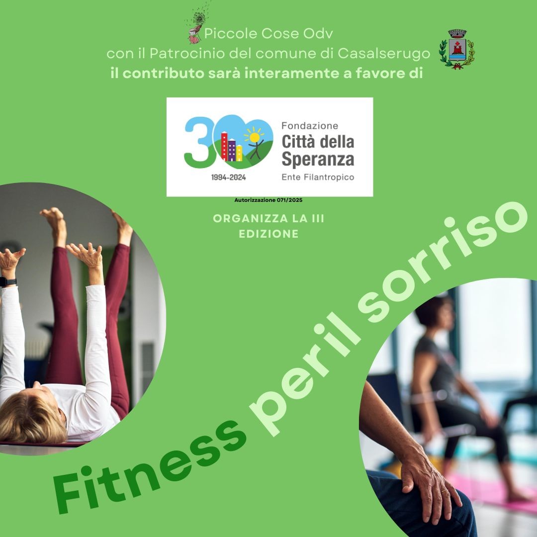 📍 Casalserugo (PD)📅 Domenica 12 ottobre 2025 – ore 9:30 Una mattinata all’insegna dell’energia, del benessere e della solidarietà: a Casalserugo arriva Fitness per il Sorriso, un evento sportivo aperto a tutti, con l’obiettivo di unire movimento e beneficenza. Tre discipline fitness si alterneranno per far muovere e divertire partecipanti di ogni età, in un’atmosfera positiva e coinvolgente: 💛 L’intero ricavato sarà devoluto a Fondazione Città della Speranza, per sostenere la ricerca scientifica e la […]