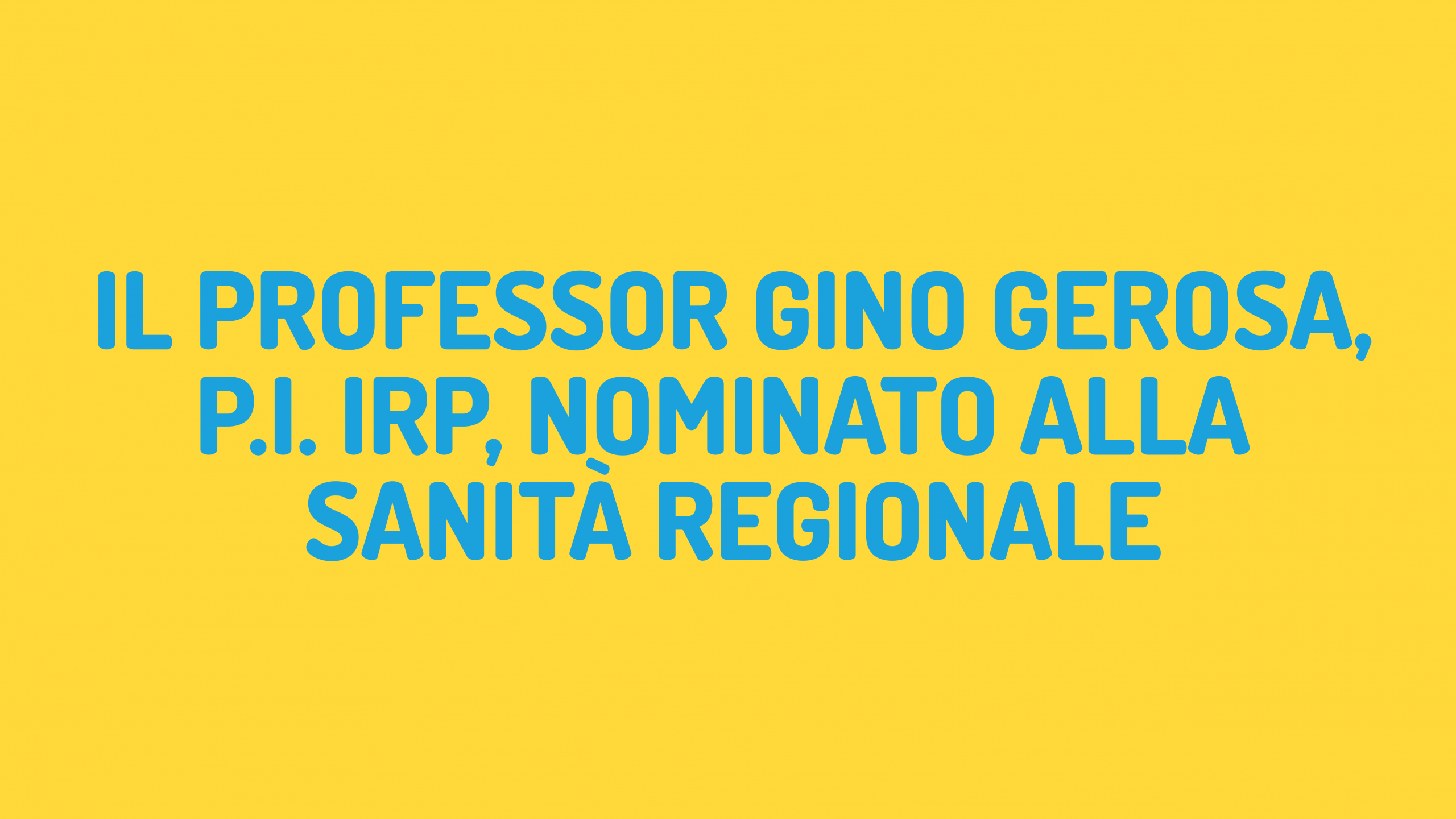 Il Professor Gino Gerosa, P.I. IRP, nominato alla Sanità Regionale